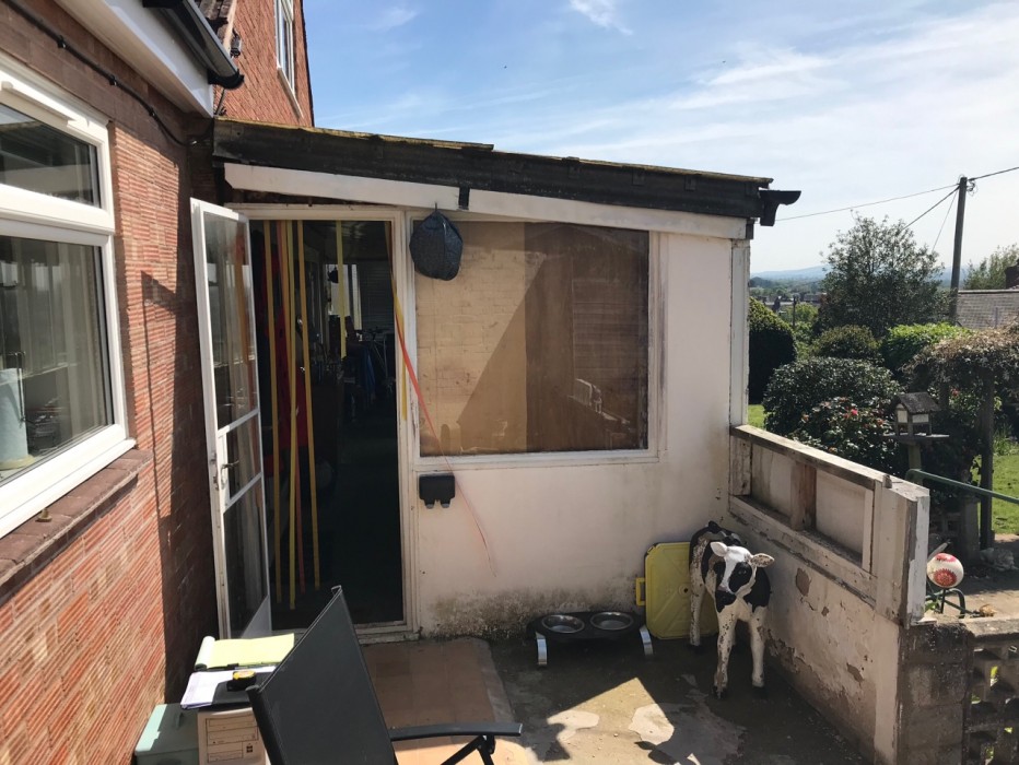 We were asked to replace the makeshift sun room and side veranda.