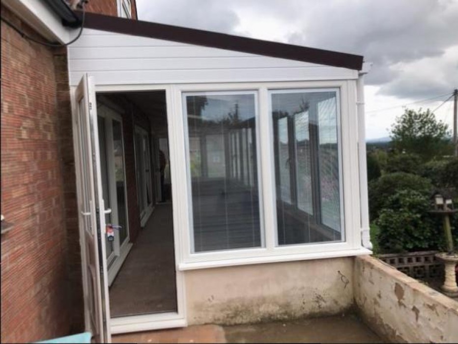 We used Veka tilt and turn windows to achieve maximum vision over the Herefordshire countryside, Internal blinds inside the glass were installed to help defuse the sunlight especially in the evening when the sun is going down. The Guardian warm roof enables the room to be used all year round and we also fitted two Velux windows to increase light into the kitchen and lounge areas, we also fitted a large dog flap into the side door so even the dogs are happy.
