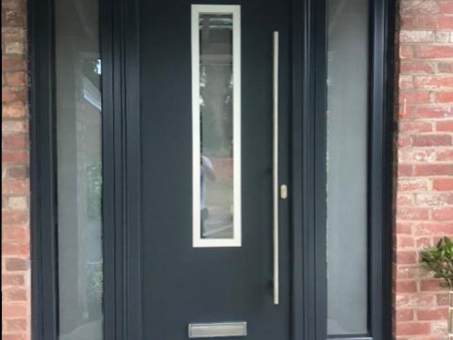 New door and glass side panels adding extra light to