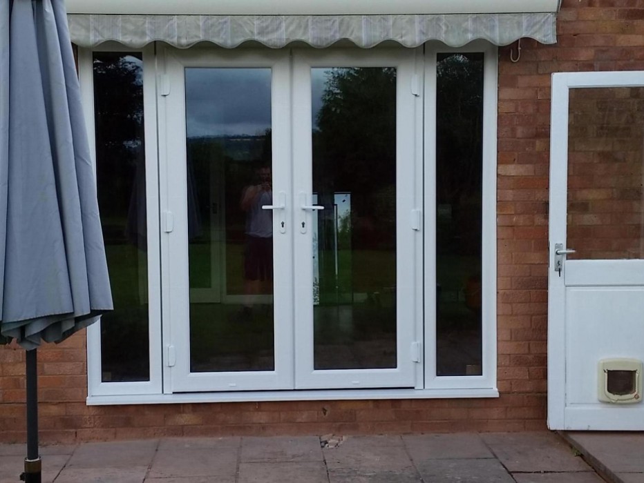 Before and after UPVC French Door Conversion in Ashperton, Herefordshire