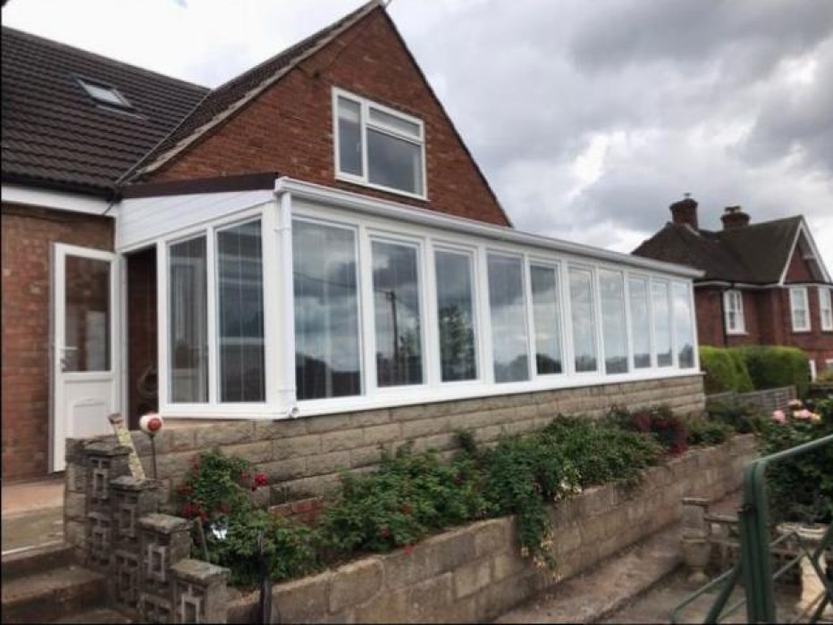 We used Veka tilt and turn windows to achieve maximum vision over the Herefordshire countryside, Internal blinds inside the glass were installed to help defuse the sunlight especially in the evening when the sun is going down. The Guardian warm roof enables the room to be used all year round and we also fitted two Velux windows to increase light into the kitchen and lounge areas, we also fitted a large dog flap into the side door so even the dogs are happy.