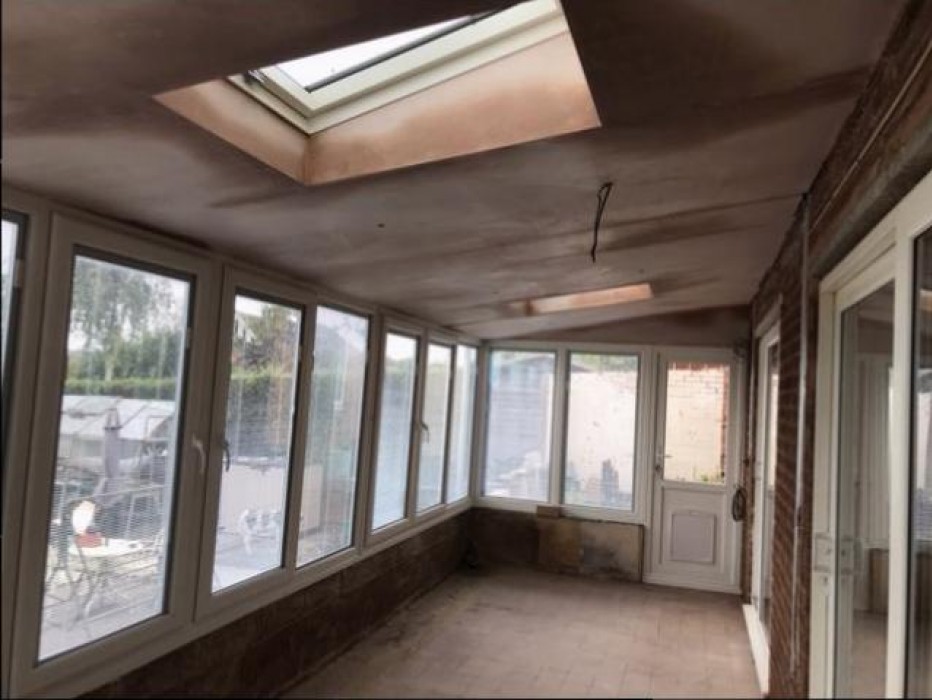 We were restricted to an angle of 10 degrees to run all the roof heights the same so that the veranda ran in line with the new guardian warm roof. Another issue was that the front blockwork was not parallel with the back wall; with all these issues the survey was crucial to achieve this amazing transformation.